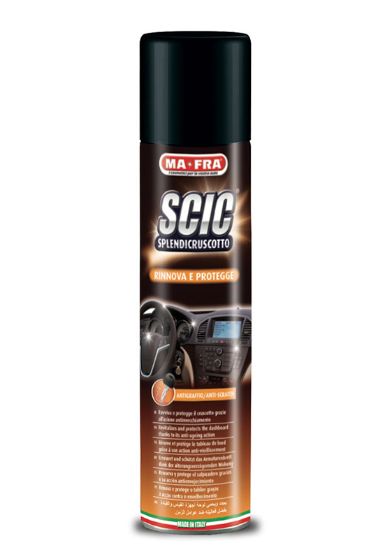 Mafra Scic orange je zaštitni sprej za njegu kokpita. Formula obogaćena aktivnim elementima koji prodiru duboko u potre tretirane površine, obnavljaju i štite od starenja, pucanja i sitnih ogrebotina od ključeva, upaljača, kovanica i mobilnih uređaja. Riječ je o koncentratu i zato je dovoljno poprskati malu količinu proizvoda. Za najbolje rezultate pošpricajte s udaljenosti od 20 cm.